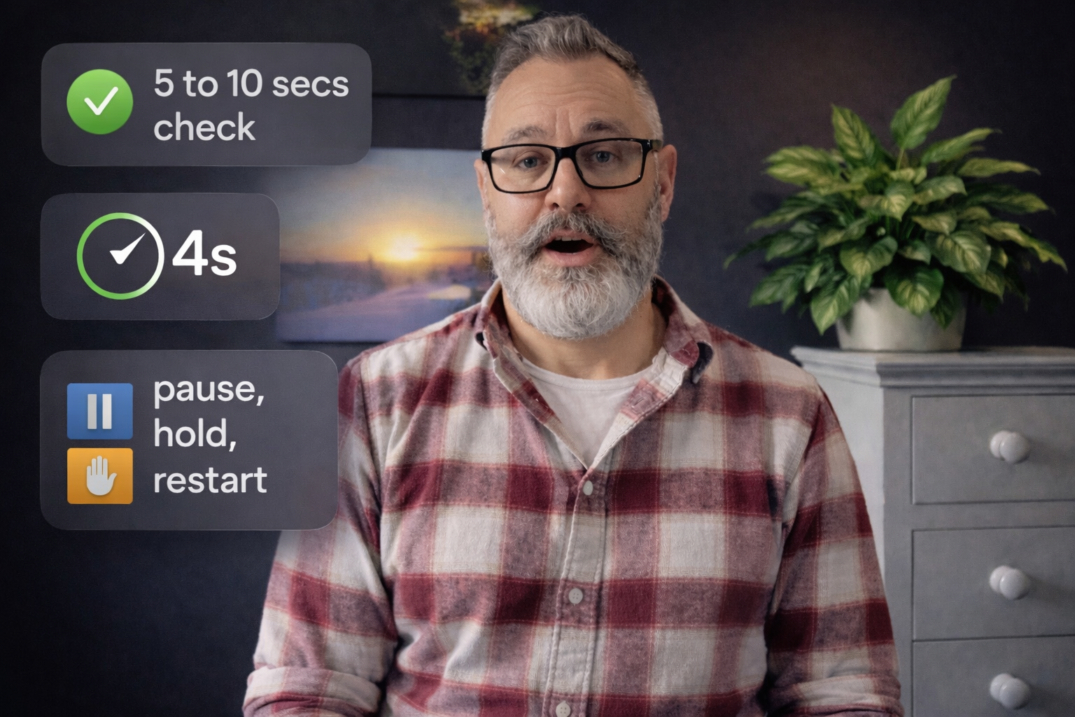 ✅ If you make a mistake: pause → hold your position → restart sentence